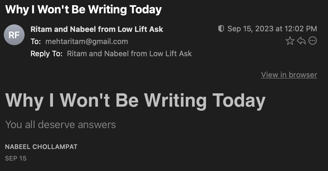 How many subscribers do you guys have? How's the whole "Friday at noon" Substack thing workin' out for you guys? Haha, so funny, I seem to always get your newsletter a few minutes before mine. That's really funny.