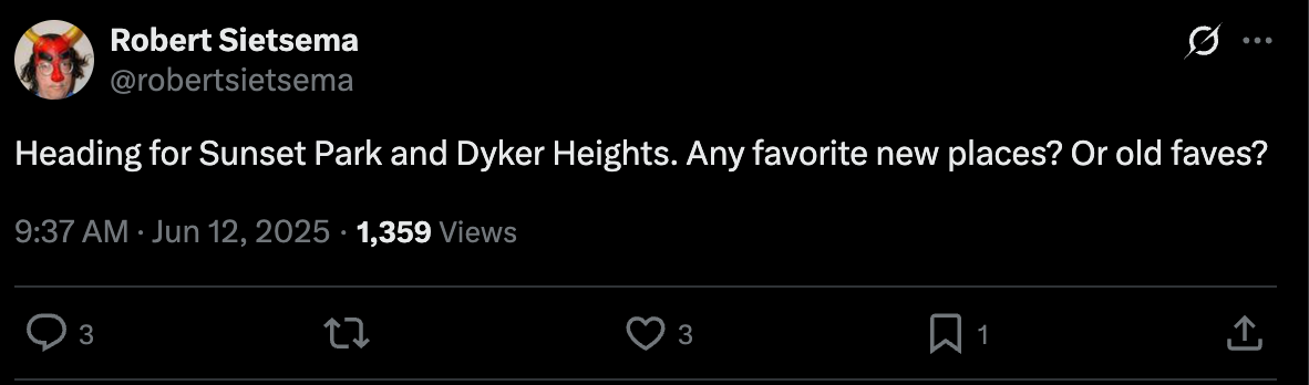 The only other best path for life I can think of is professional food critic. One of the OGs, Robert Sietsema, my DAWG, has been on Substack for a while after years of toiling away on Eater.
