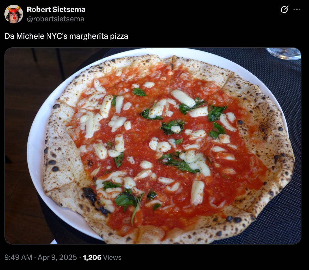 This literally looks like fucking ass. It looks so bad. I know it probably tastes good (sauce heavy af) but the mozzarella globules make me want to vomit. I do not think I will be going to “Da Michele.”
