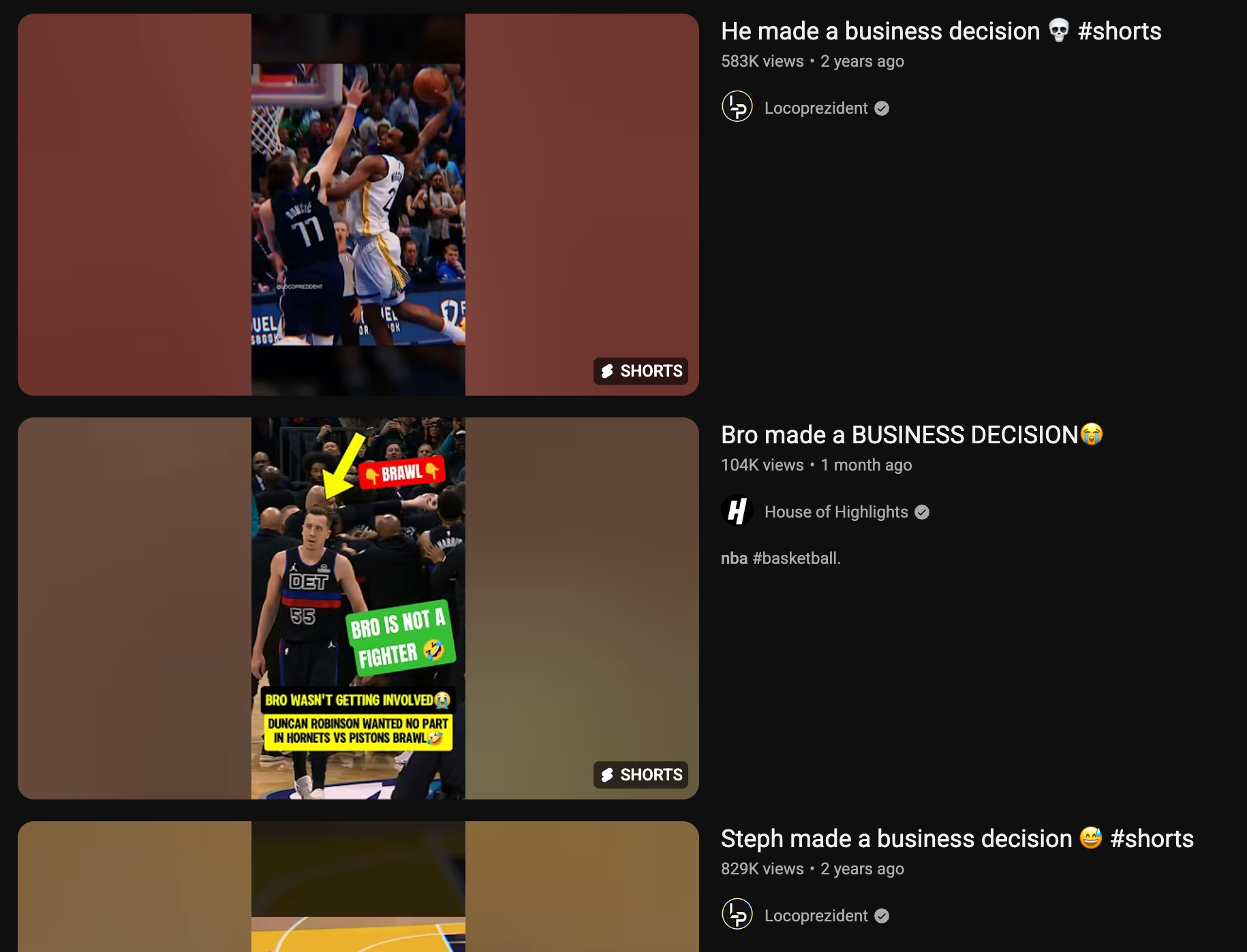 This one seems to have taken off in the last five or six years: all it means is that a guy decided not get dunked on, instead moved out of the way, and in doing so, “made a business decision.” I don’t really follow the logic 100%, but they love saying it these days.